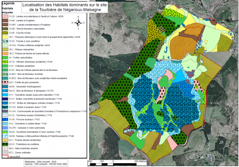 Le site abrite 10 habitats naturels visés par la Directive, dont 3 sont d'intérêt communautaire prioritaire. Les végétations des tourbières sont très représentées mais on trouve aussi sur le site quelques surfaces en lande sèche et hêtraie acidophile à houx.